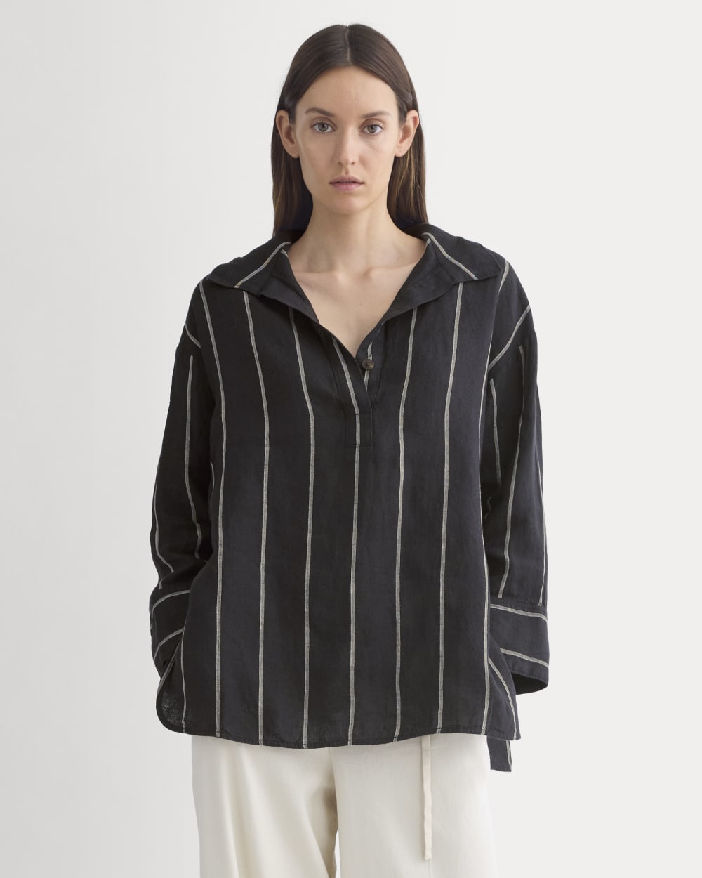 Popover Shirt in Linen | Gardenia/Meteorite