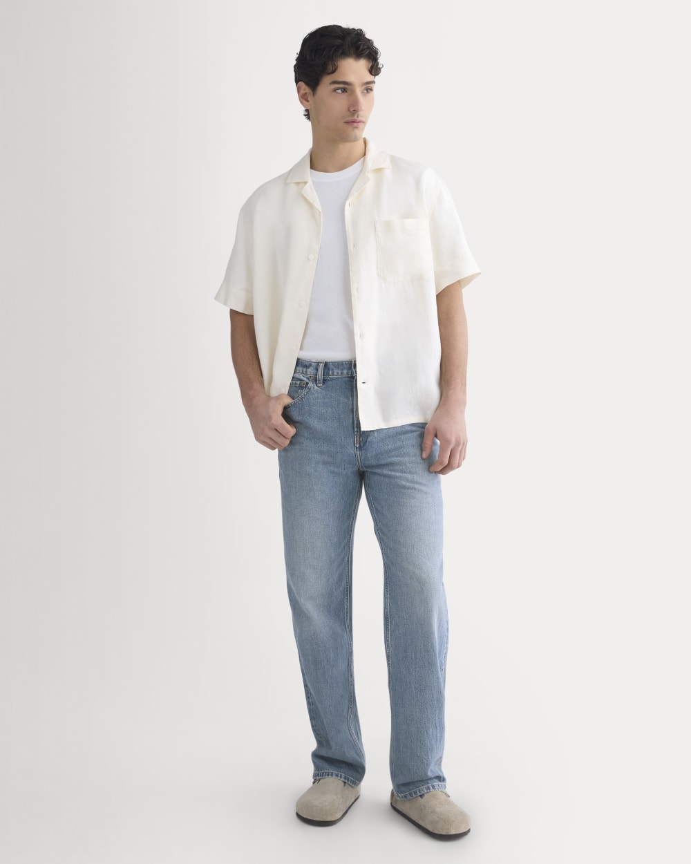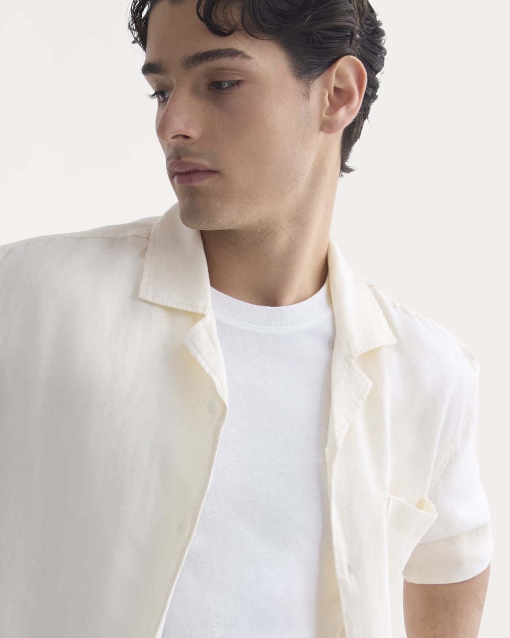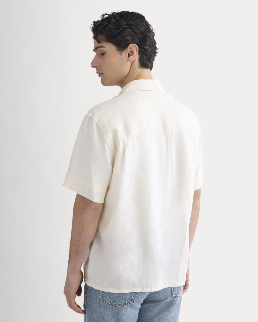 A modern resort shirt cut with a little more ease and a slightly shorter hem for a boxier. current silhouette. Finished with a classic resort collar and chest pocket. it feels relaxed without losing structure. Made from airy. breathable linen sourced from France. with a refined feel that wears comfortably as the days start to warm.