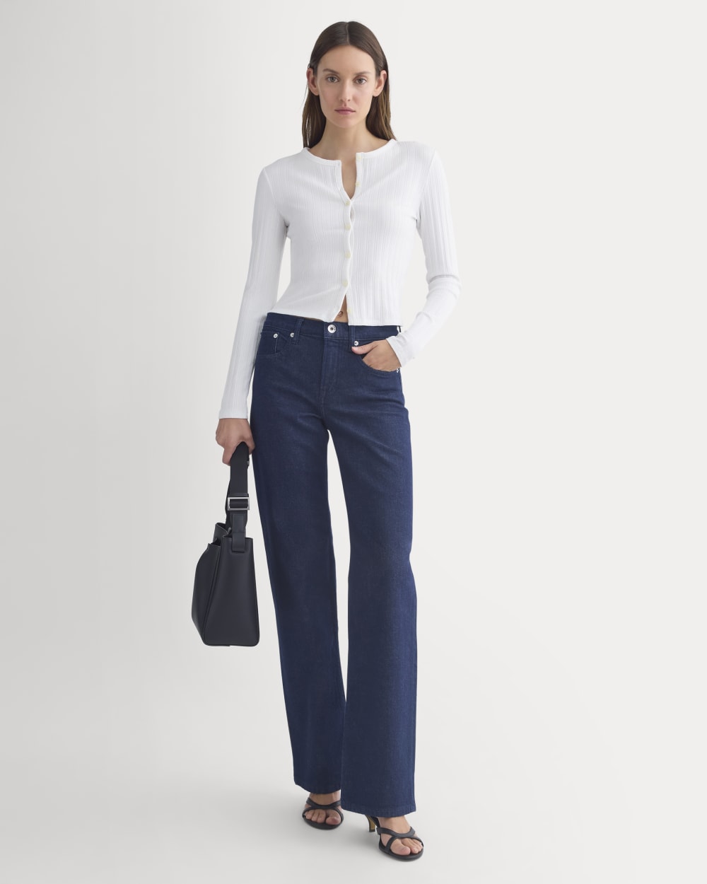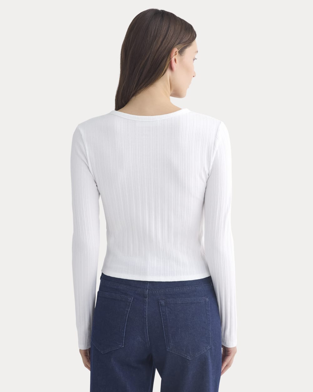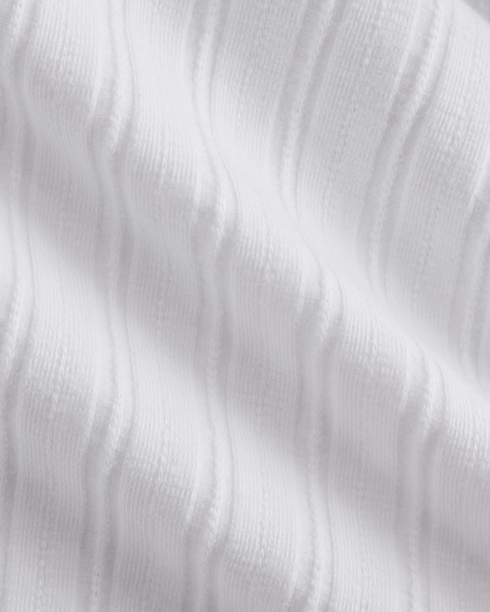 A lightweight cardigan with a crew neckline. it has a close. slim fit that feels more like a top. Made with our pointelle fabric for subtle texture and breathability. Wear with shorts. denim. or skirts—anything goes.