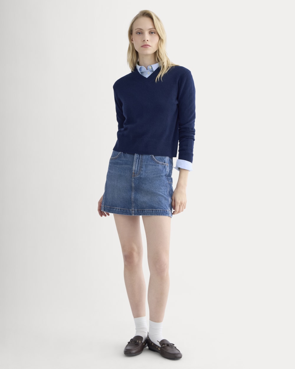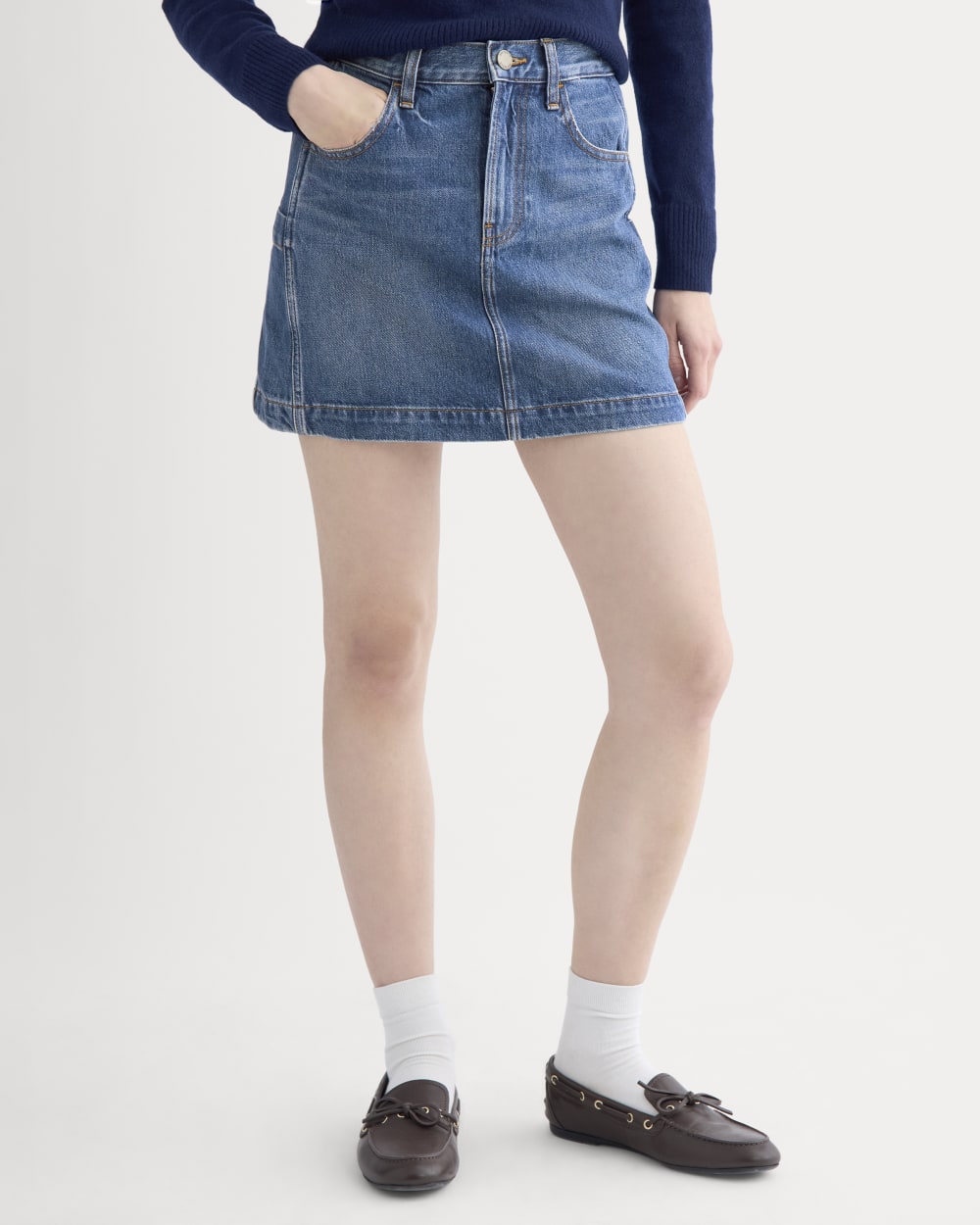 This mini skirt features functional side and back patch pockets. including a carpenter-style pocket for extra edge. Made from rigid. 100% organic cotton denim. Easy to wear. easy to style. and built for everyday movement.