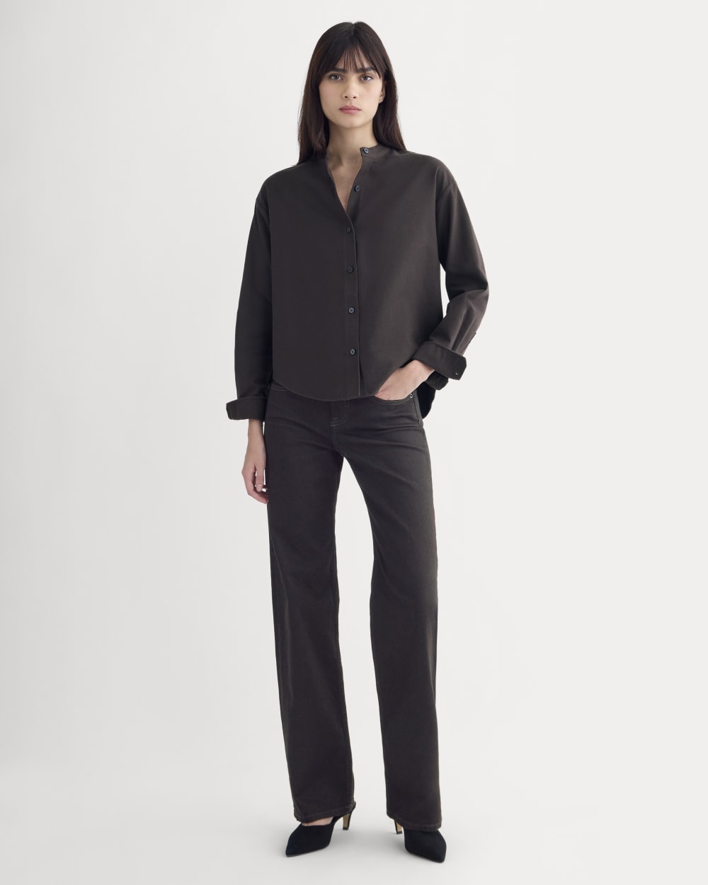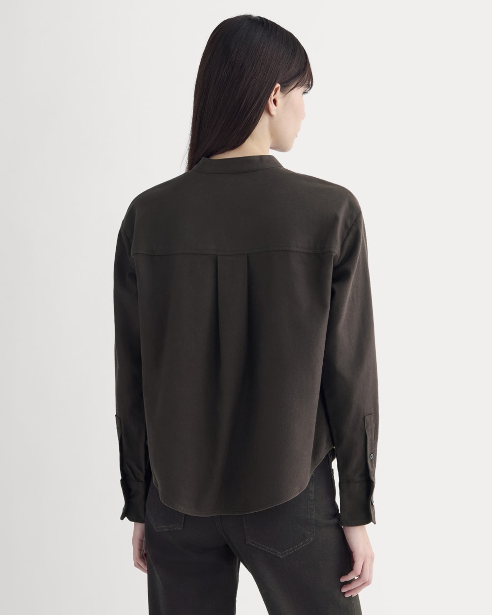 The seasonal staple gets an upgrade with a stand collar for a more elevated take. Made from 100% certified organic cotton—double-brushed. so it's even softer against your skin. Complete with button cuffs and closure. the campfire has never looked so chic.