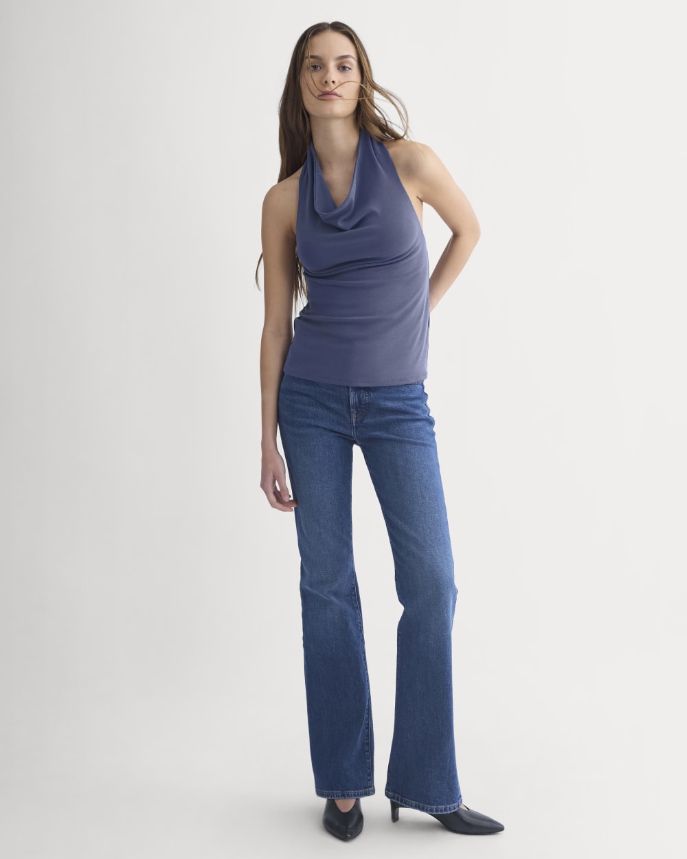 Halter Cowlneck Top in Butterknit | Washed Navy