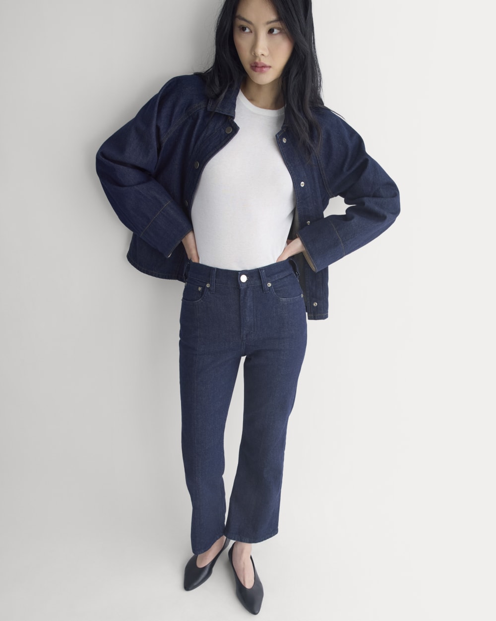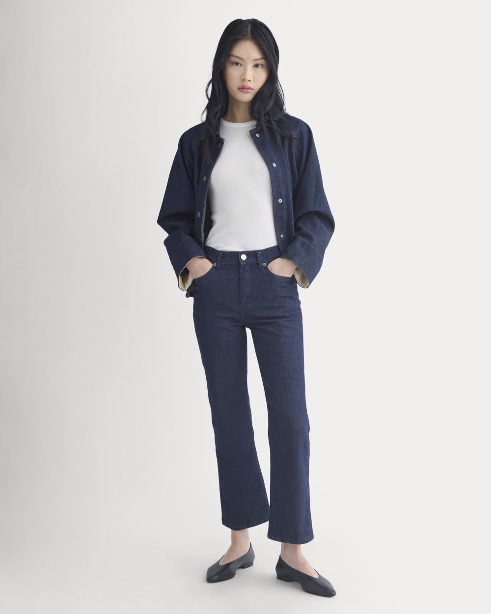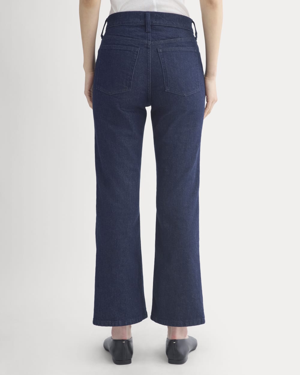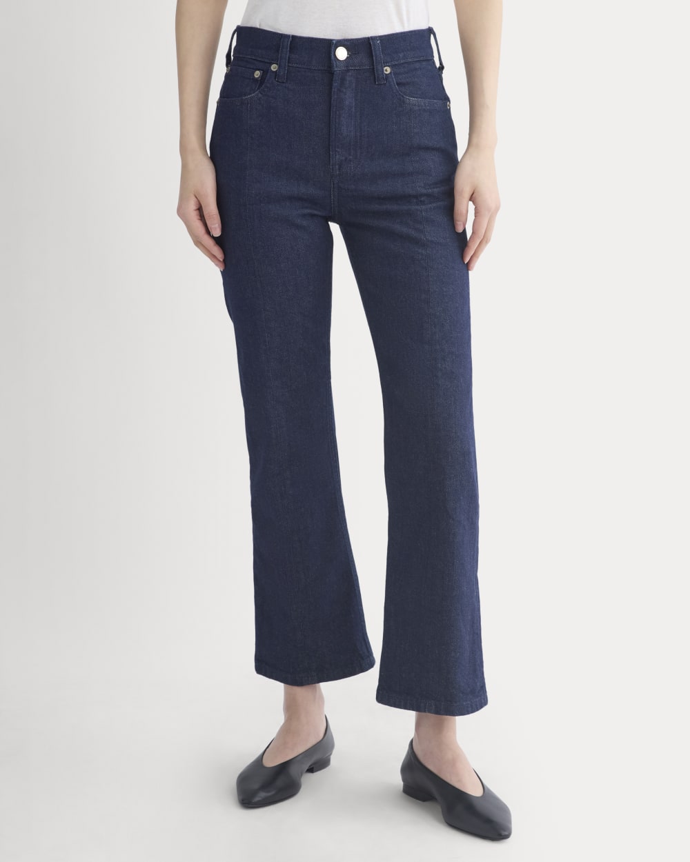 Cropped with a kick flare and modern front seaming. this high-rise jean elongates and flatters with every step. Crafted from mid-weight. low-stretch organic cotton denim—it's durable. soft. and made to move with you.