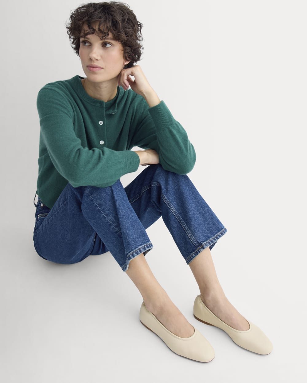 This round-toe flat features softly gathered Italian Nappa leather that molds comfortably to your foot. with subtle cinching at the heel for easy on and off. A durable. wear-everywhere flat you'll reach for again and again.