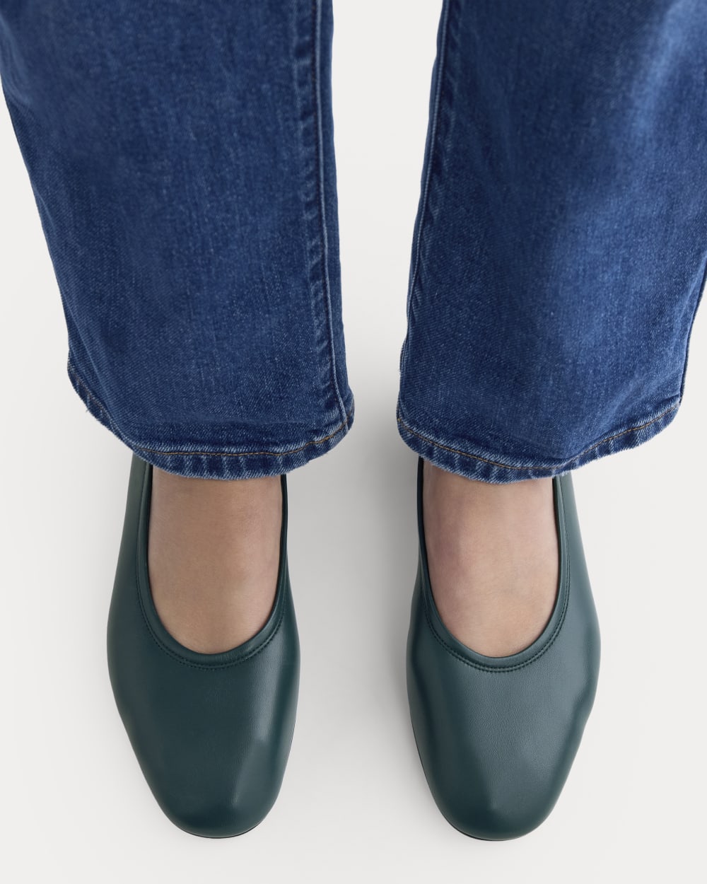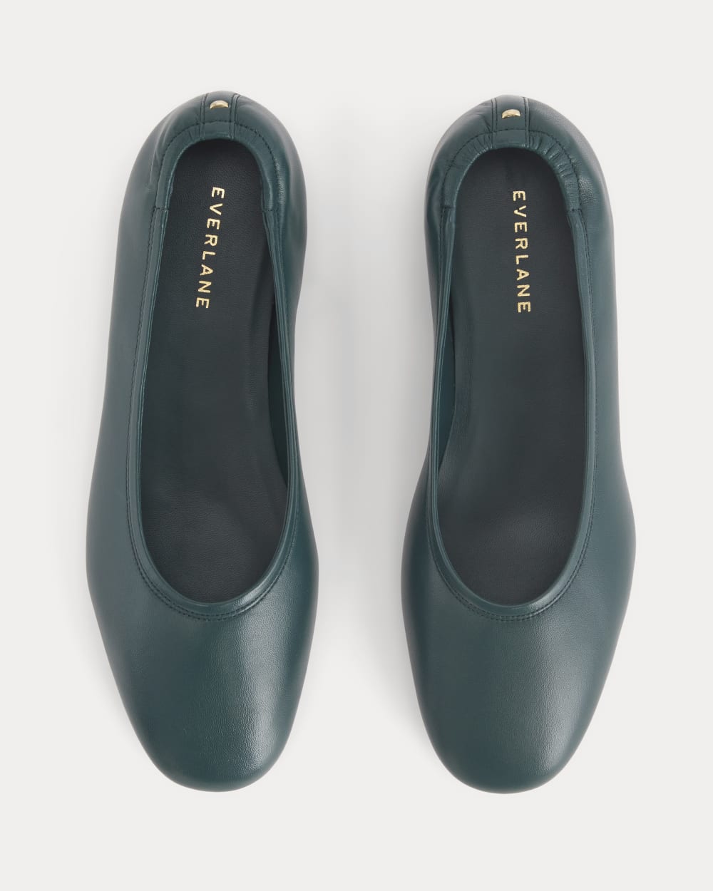This round-toe flat features softly gathered Italian Nappa leather that molds comfortably to your foot. with subtle cinching at the heel for easy on and off. A durable. wear-everywhere flat you'll reach for again and again.