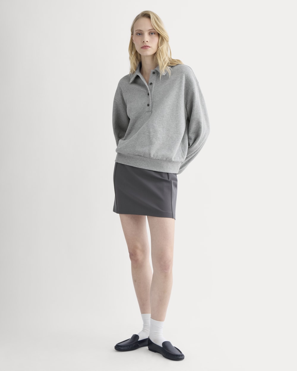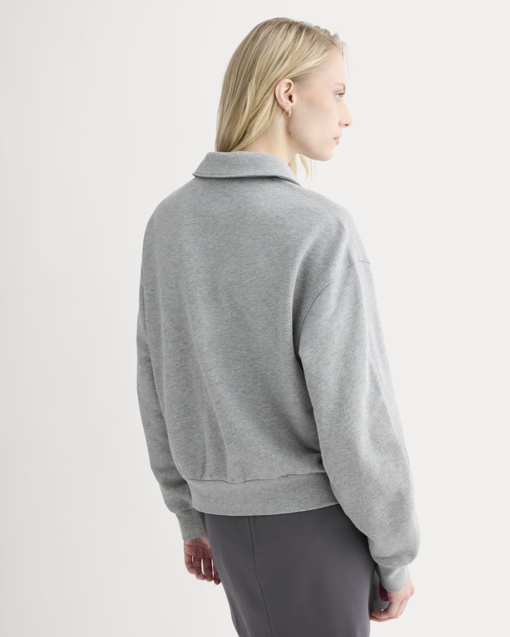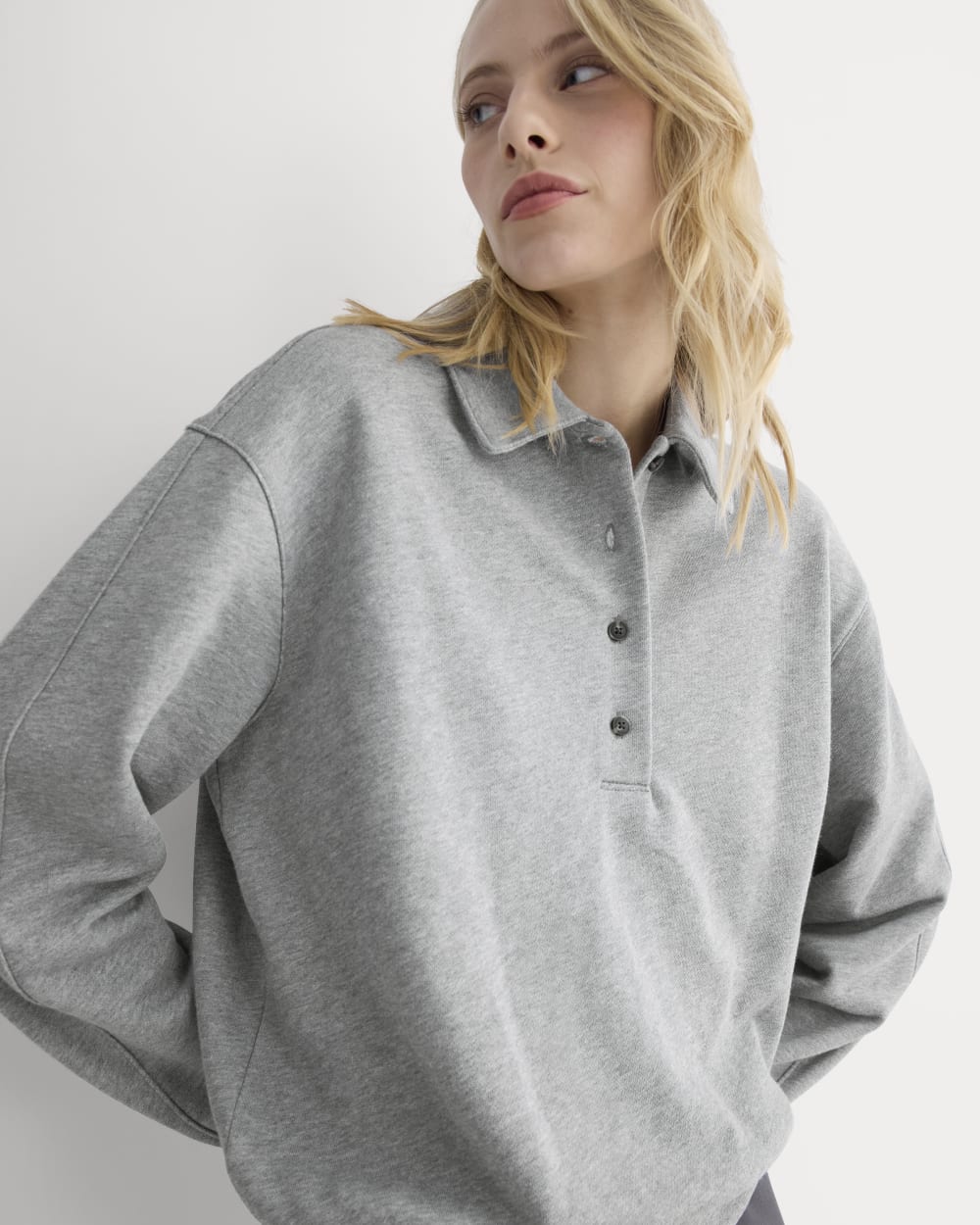 This long-sleeve polo sweatshirt has an oversized fit. soft blouson shape. and subtle seam details for a laid-back yet put-together feel. Easy. cozy. and endlessly wearable.