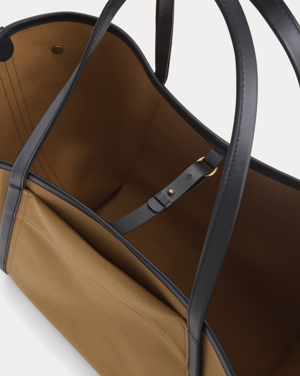 This structured canvas tote features leather trim. metal feet. and snap details that let you switch up the shape. Durable. polished. and made to carry it all.