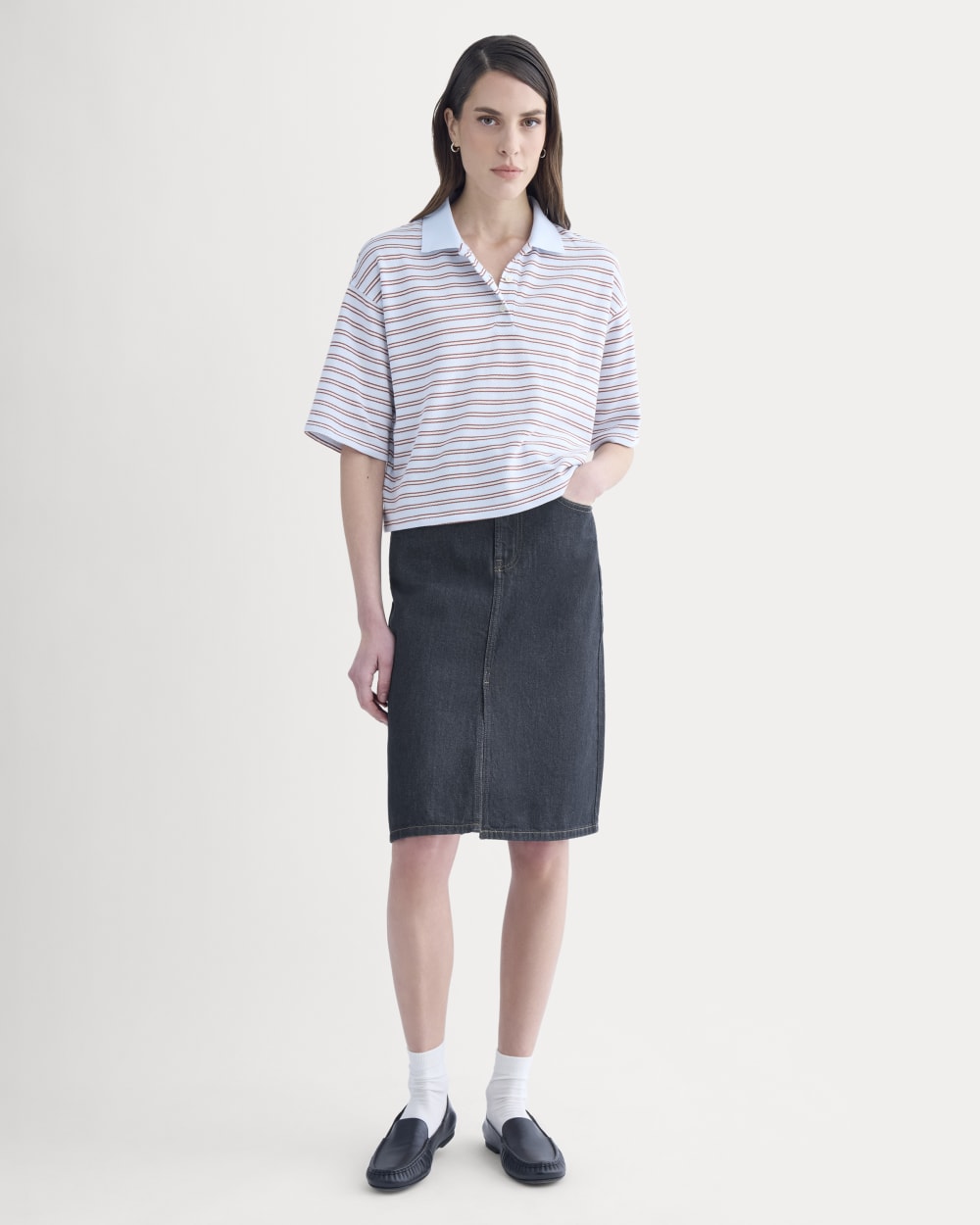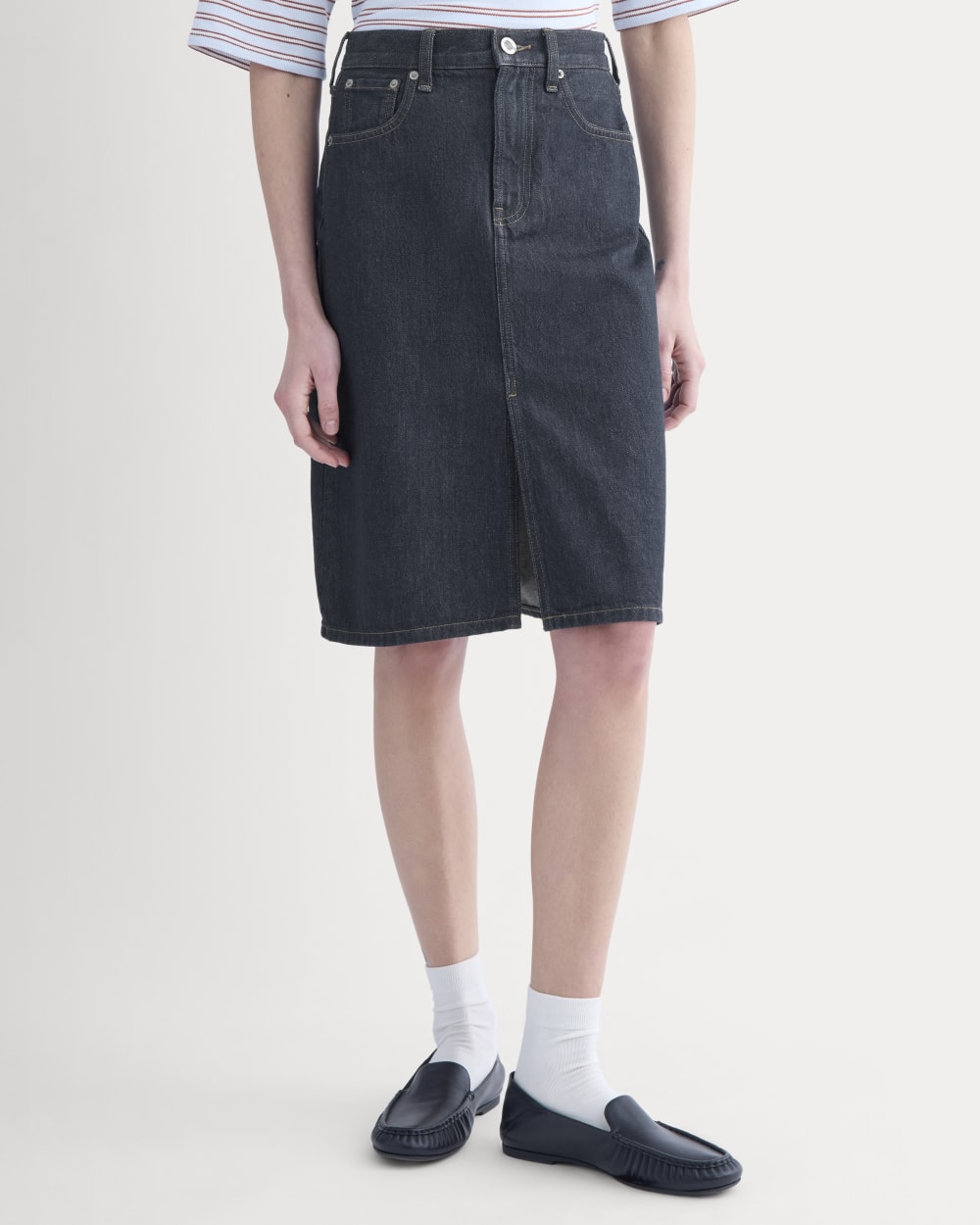 Mid-Rise Denim Midi Skirt | Tungsten Rinse