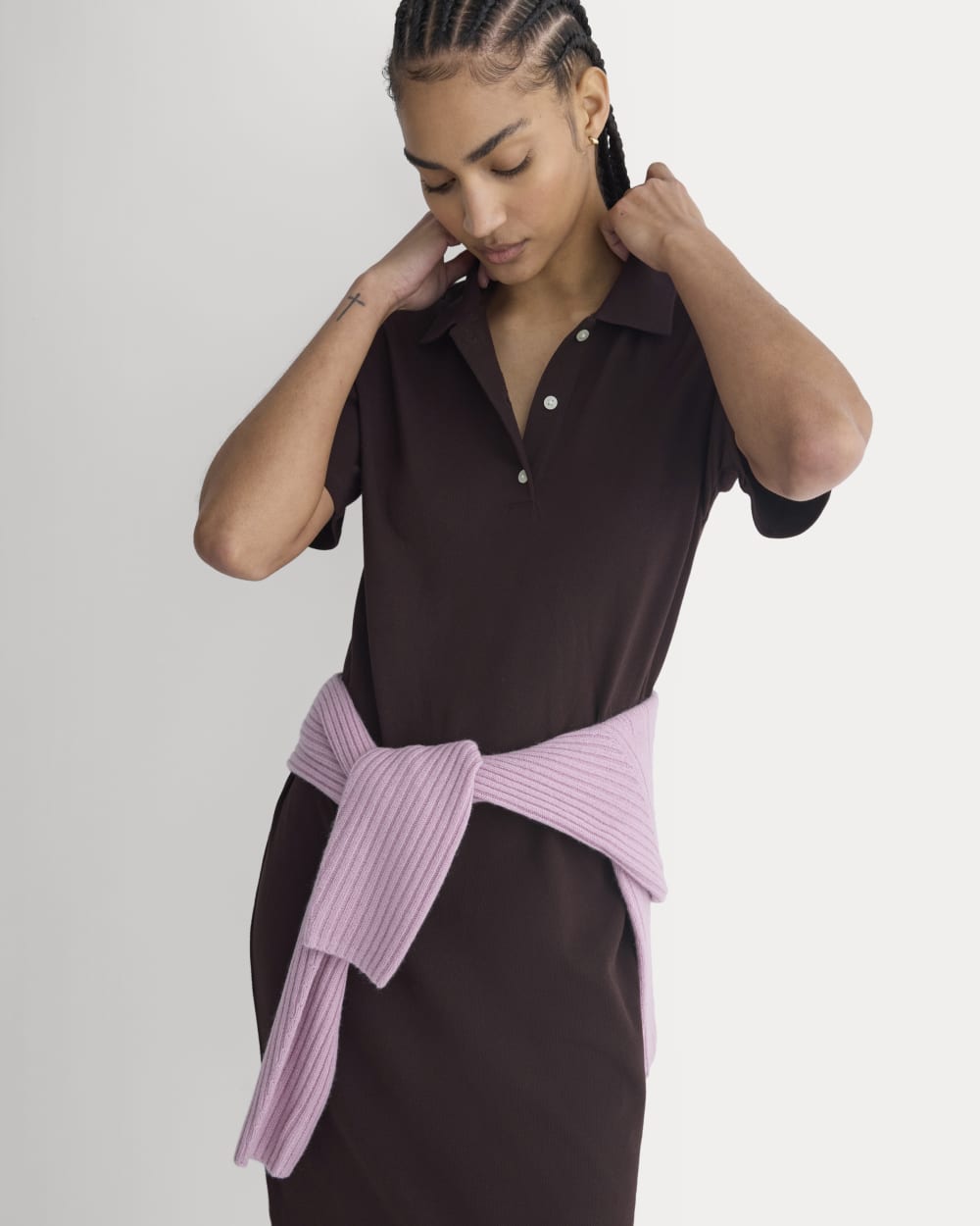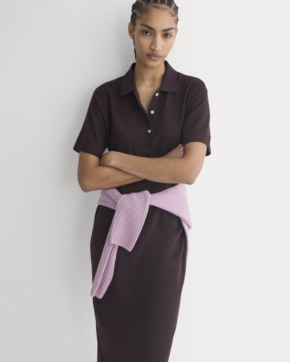 Pique Polo Short-Sleeve Dress | Dark Chocolate