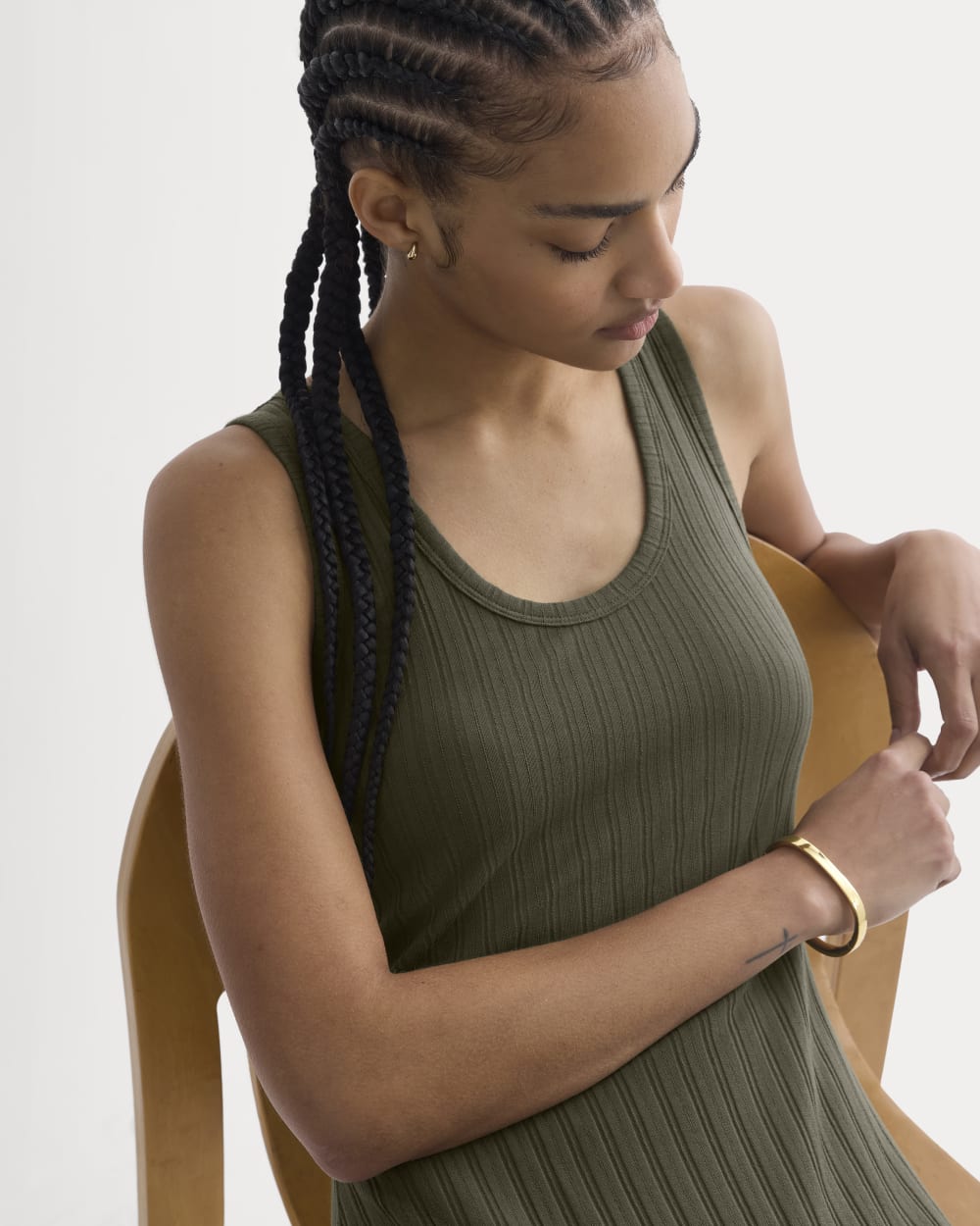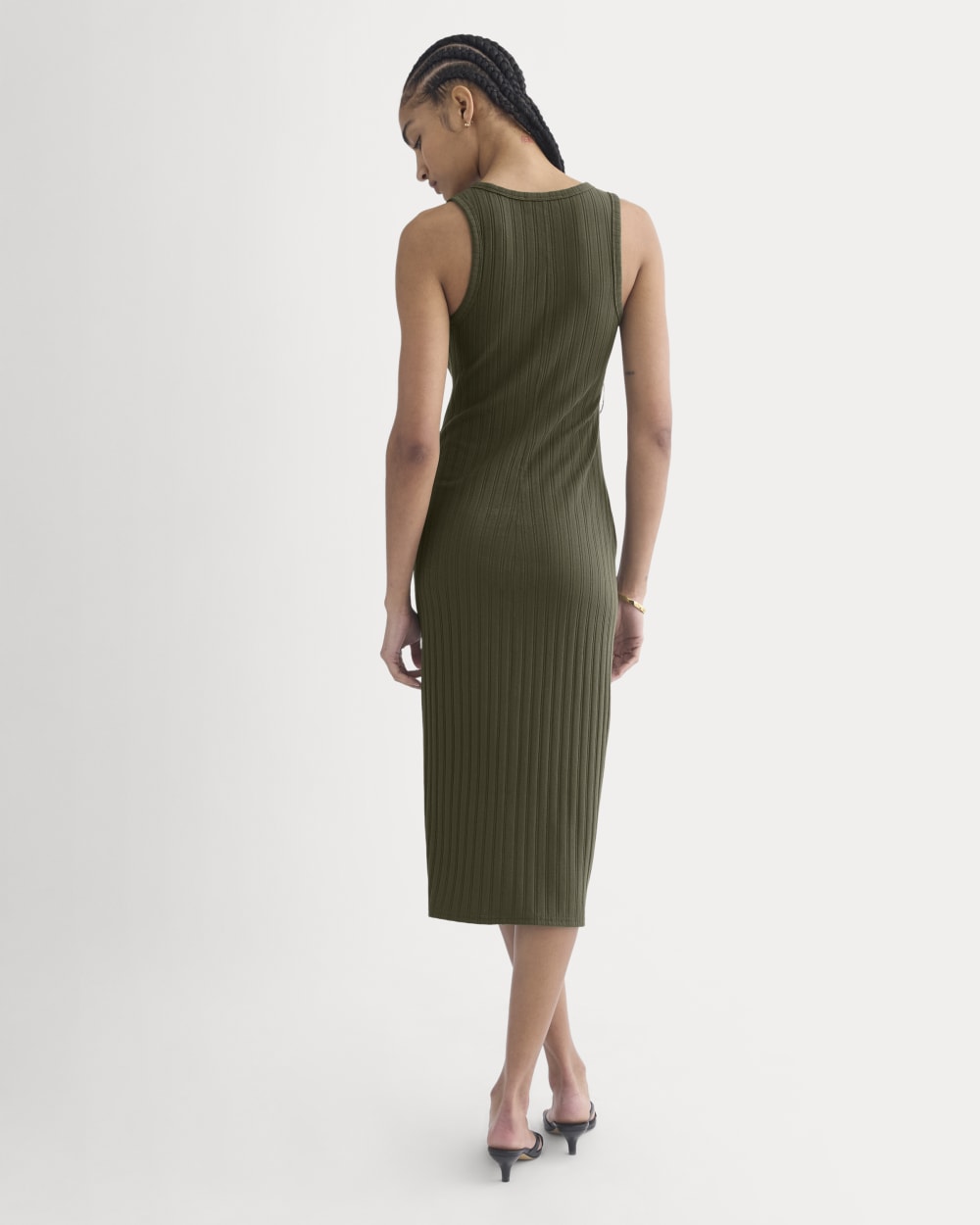 Scoop-Neck Midi Dress in Pointelle Knit | Olive Night