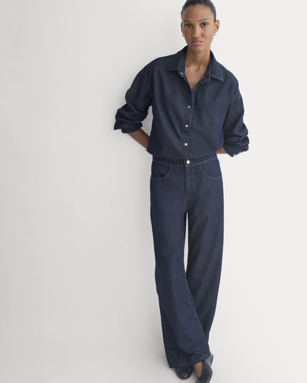This barrel-shaped style features a relaxed leg. elastic at the back waist. and lightweight organic denim with a soft feel. We love it with the Styoma x Elena Bonvicini Balboa Button-Up Shirt.